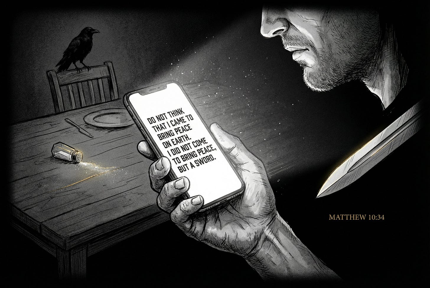 Think not that I am come to send peace on earth: I came not to send peace, but a sword. — Matthew 10:34